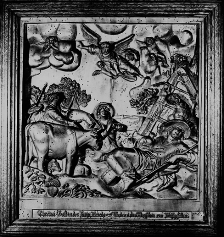 Beschriftung am unteren Reliefrand: "Ehre sei Gott in der Höhe, Friede auf Erden, und den Menschen ein Wohlgefallen"