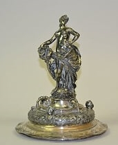 Eberlein hat die junge, stolze Frauen-Figur auf der Spitze des Deckels neu entworfen. Die Verzierungen zum Fuß des Pokaldeckels sind sehr filigran.