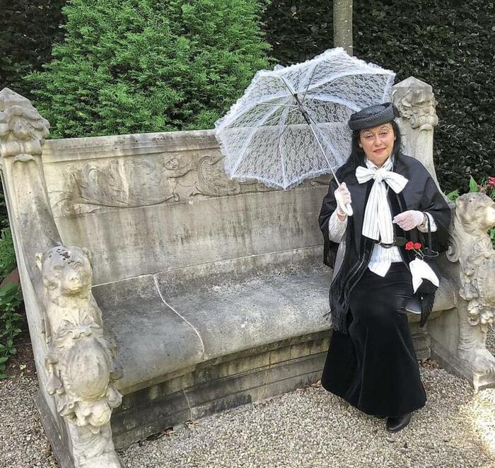 Renate Heumann ist selbst Mitglied des Vereins Gustav-Eberlein-Forschung. 2017, während der Veranstaltungen zum 170. Geburtstag von Gustav Eberlein trat sie zum ersten Mal als Eberleins zweite Ehefrau Maria, geborene Gräfin von Hertzberg, auf. Anhand eines Fotos von 1903 hat sie ihre Garderobe zusammengestellt.